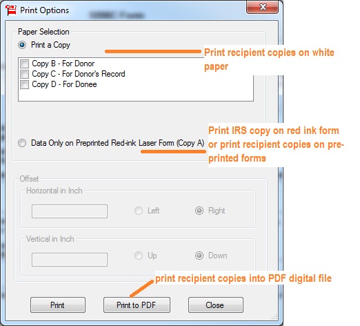 You can click the "PRINT TO PDF" button to print recipient copies into PDF files. However, this feature is only available for advanced version.