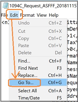 Step 3.3: Click the top menu "Edit" then the sub menu "Go to" to go to the line