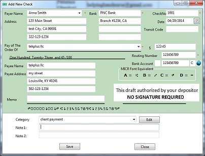 | - Print pre-approved draft check to receive payment via phone, email, fax and online quickly - Print unlimited draft checks on blank stock - Print checks with MICR encoding line - Support unlimited bank accounts - Print check with stubs - Supports check-on-Top and 3-per-page formats - Print multiple checks with one click - Write recurring checks easily | Yes | Yes |