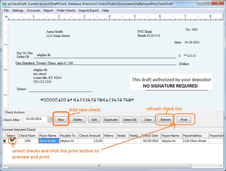 | - Print pre-approved draft check to receive payment via phone, email, fax and online quickly - Print unlimited draft checks on blank stock - Print checks with MICR encoding line - Support unlimited bank accounts - Print check with stubs - Supports check-on-Top and 3-per-page formats - Print multiple checks with one click - Write recurring checks easily | Yes | Yes |