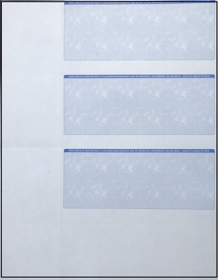 | 100 sheets Blank Personal Computer Checks (300 checks) Sheet size: 8-1/2" x 11"; Check Size: 6"X2 3/4"; Color: blue;