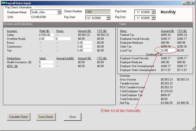 • #3: Enter the local tax manually each time when generating a new payroll check.