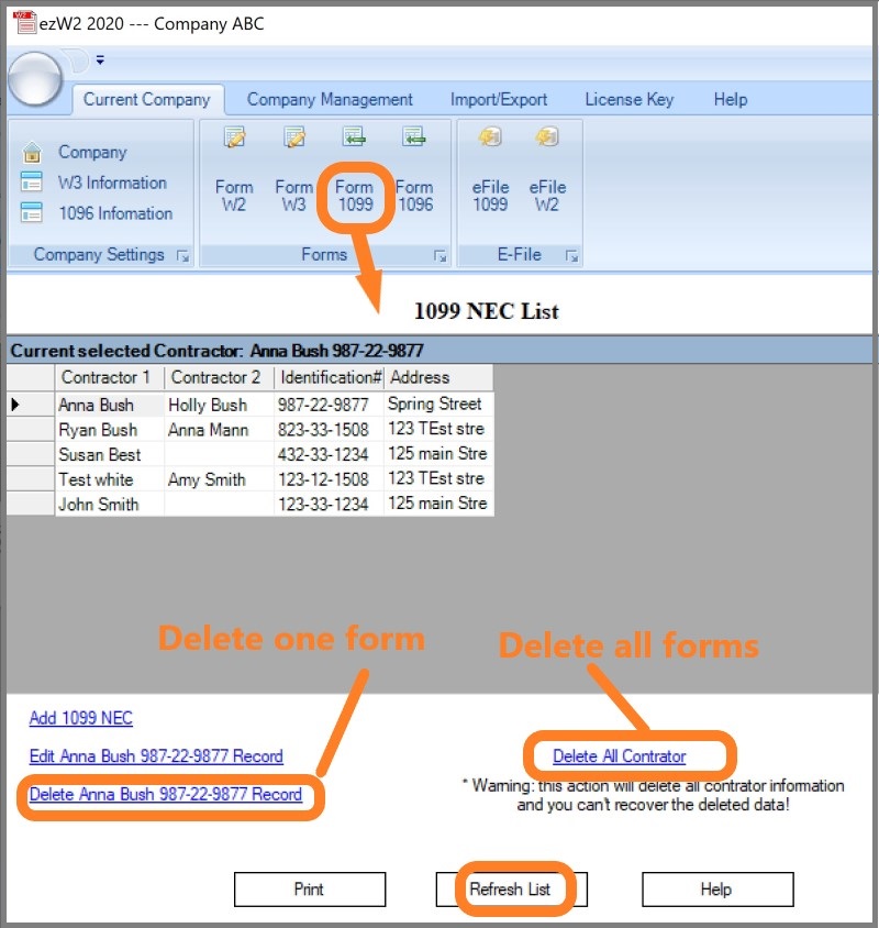 2.2 Click the link "Delete All Contractors" to remove all 1099-nec forms from list.