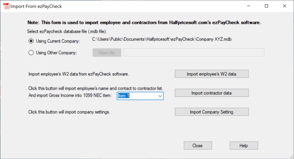 • 3.2 Select ezPaycheck accounts, import company settings and 1099-nec form data.