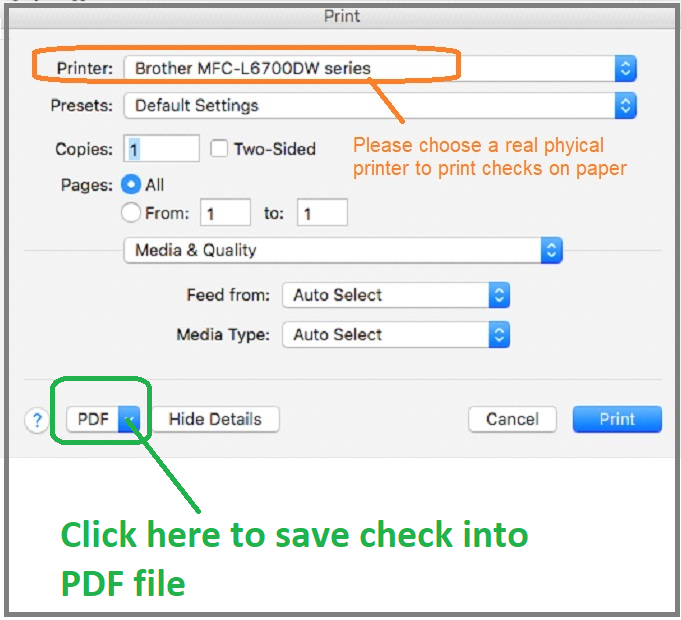 1.4. On the preview screen, click the PRINTER icon to save check(s) into PDF file.