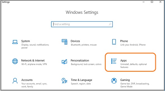 1. Click the "Start" button (at the left bottom corner of your screen) 2. Click "Settings" 3. Click "Apps" (or "Apps & Features")