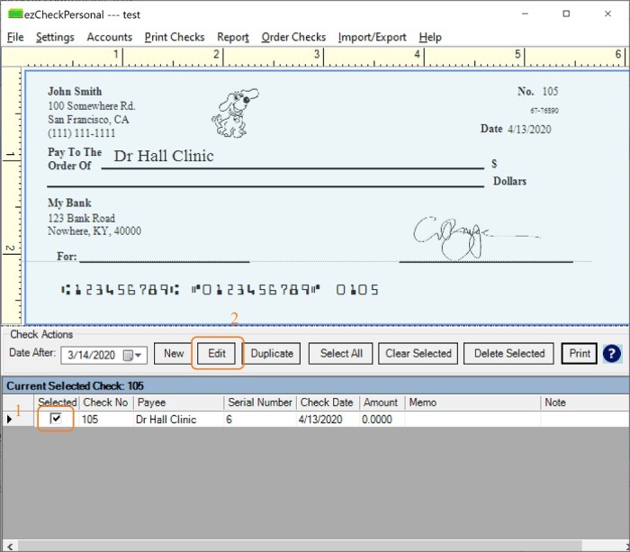 Step 1. Start ezCheckPersonal, click the top menu "Settings" then "Check Layout Setup" to view layout setup screen.