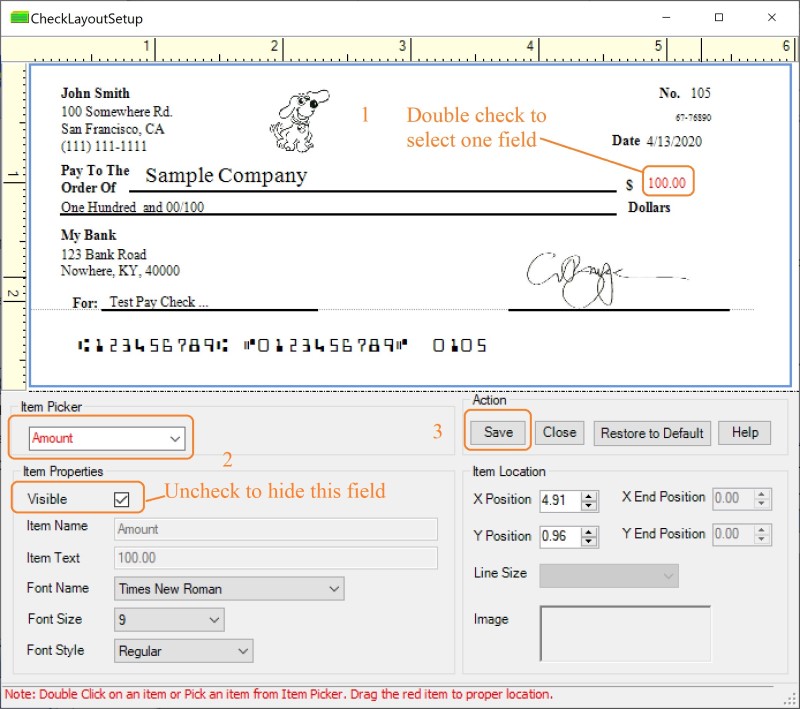 ezCheckPersonal: How to Hide Amount Field Only on Check