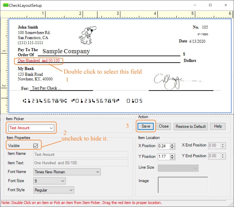Step 2. Hide the "Amount" and the "Text Amount" fields on check