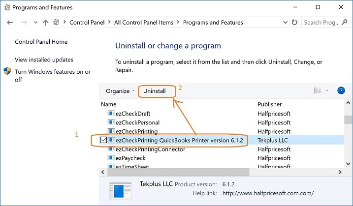 1.2: Uninstall ezCheckPrinting QuickBooks Printer if you installed it before