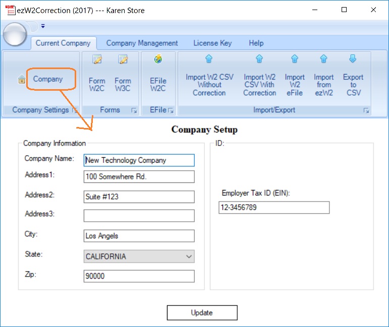 3. ezW2Correction allows user to set up unlimited companies with one flat rate. So if you have multiple companies or you are an accountant, you can add new company by clicking top menu "Company Management->New company".